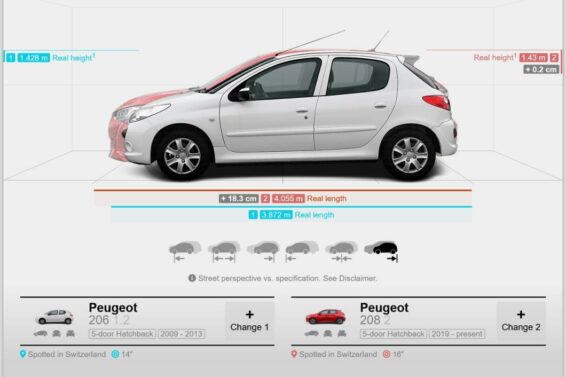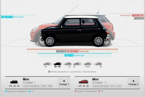 Razlike u veličini između automobila su generalno ograničene. S druge strane, rast automobila tokom generacija je očigledan. Mini ili Golf danas više nemaju mnogo veze sa svojim precima.