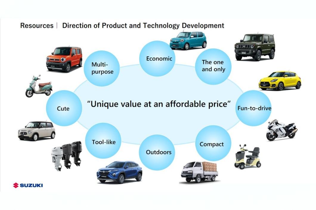Nakon rekordne 2022. godine, tokom koje je njegova prodaja porasla za oko 7% i približila se 3 miliona jedinica širom sveta, Suzuki će uložiti 32 milijarde evra tokom sedam godina da smanji emisiju CO2. Lansiranje električnih modela biće propraćeno dekarbonizacijom proizvodnje i istraživanjem alternativnih izvora energije, kao što su nova goriva u saradnji sa Toyotom, Daihatsuom i Subaruom.