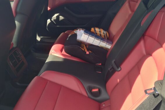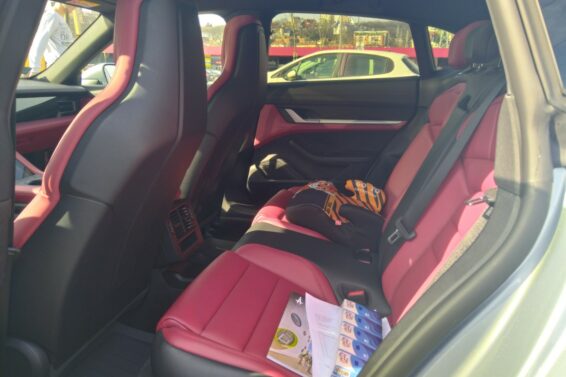 Pošto su prve misli asocirane s Taycanom bili vezane za enterijer, njega sam prvo i osmotrio. Mesta je drastično više, posebno za putnike na zadnjoj klupi, i to kako za njihova kolena, tako i za glave, ali… Ovo je vozilo kom nedostaje dva ili tri centimetra da bi bilo pet metara dugo, a pride kažu i krosover! Imajući to u vidu, žestoka je oskudacija po ovom pitanju. Kada se na prednjem sedištu smesti lik visine 1,83 metara, onda ja sa svojih 1,77 metra nazad sedim „ok“ i ništa više od toga. Treći putnik na zadnjoj klupi bi morao biti, da nastavimo u glumačkom svetu, veličine Selme Hajek, a i onda bi verovatno bila gužva. Doduše, veoma prijatna gužva.