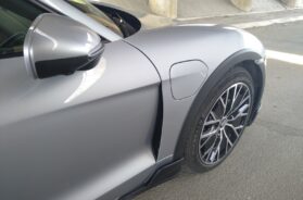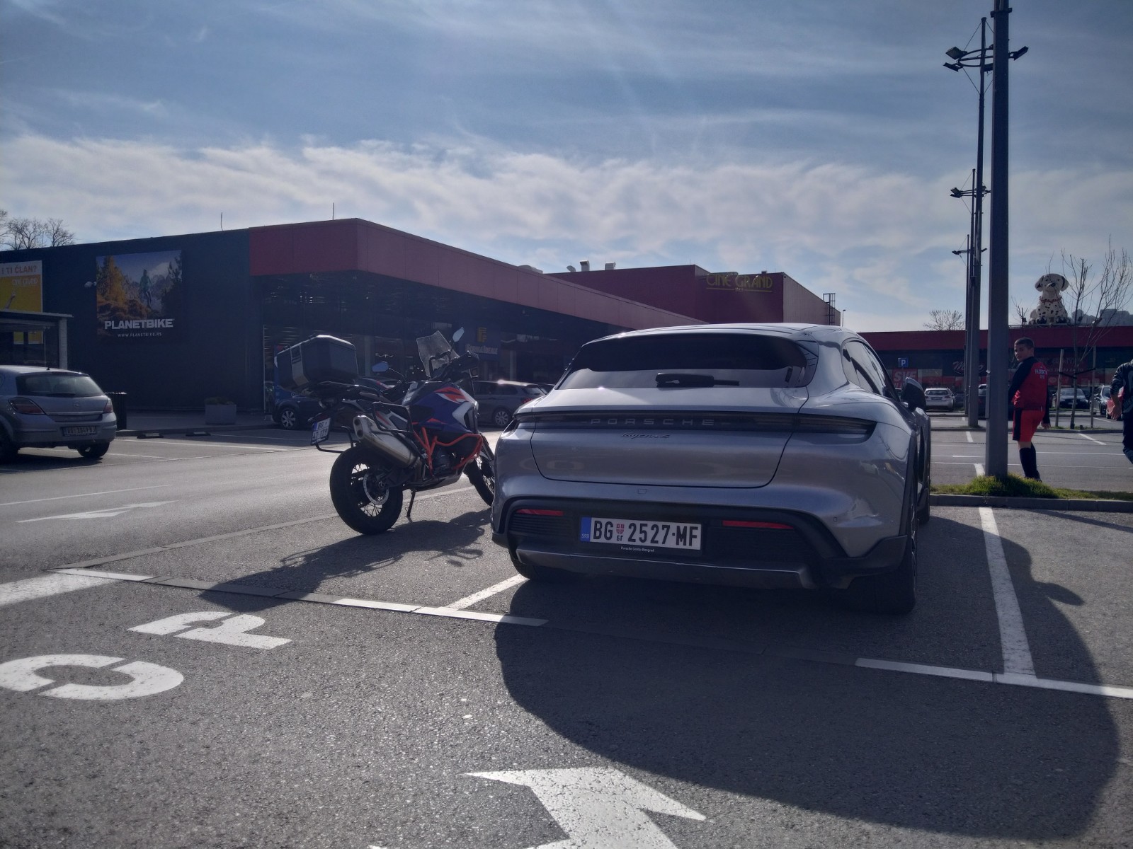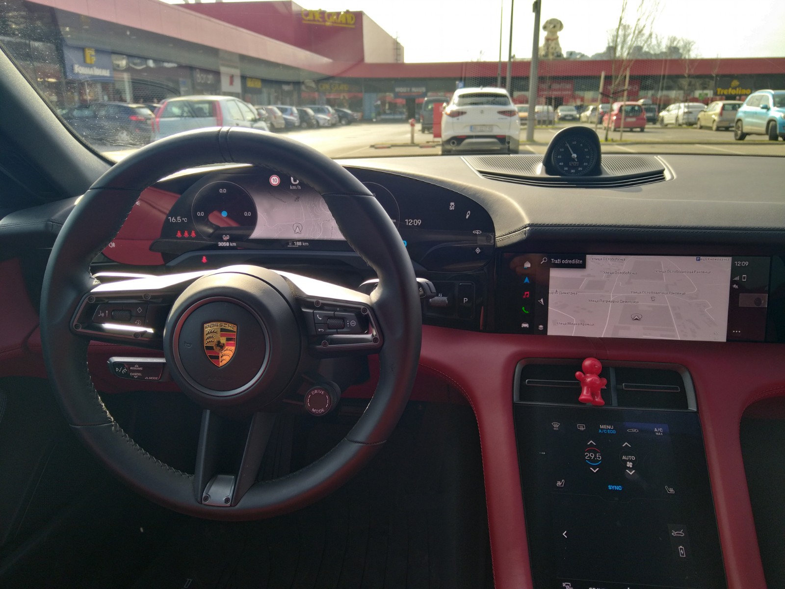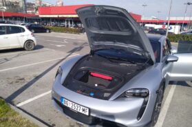 S obe strane vozila, dakle na prednjem levom i desnom blatobranu se nalaze otvori za konektore za brzo i sporo punjenje. Porsche ima natpremijum imidž, ali svuda je u svetu problem s kadrovima, pa toga nije lišen ni ovdašnji centar Porschea. Čitajući ponudu koju je dobio vlasnik vozila, zapazio sam tragikomičan podatak da je omogućena brzina dopune ovog vozila od samo 71 kWh, dok je na internetu dostupan podatak o brzini koja nadmašuje 235 kWh, što je odličan podatak, posebno ako se ima u vidu da je model lansiran pre skoro dve godine. Ako vas zanima vozilo iz segmenta električnih, ovo je najvažniji podatak koji treba gledati, uz jačinu napona na kom radi sistem. Dakle, nije to kapacitet baterije (ovde 93,5 kW). Pomenusmo napon, i on je kod Porschea na nivou od 800 volti, za šta bi trebalo da dignu spomenik Rimcu iz komšiluka (verovatno i jesu).