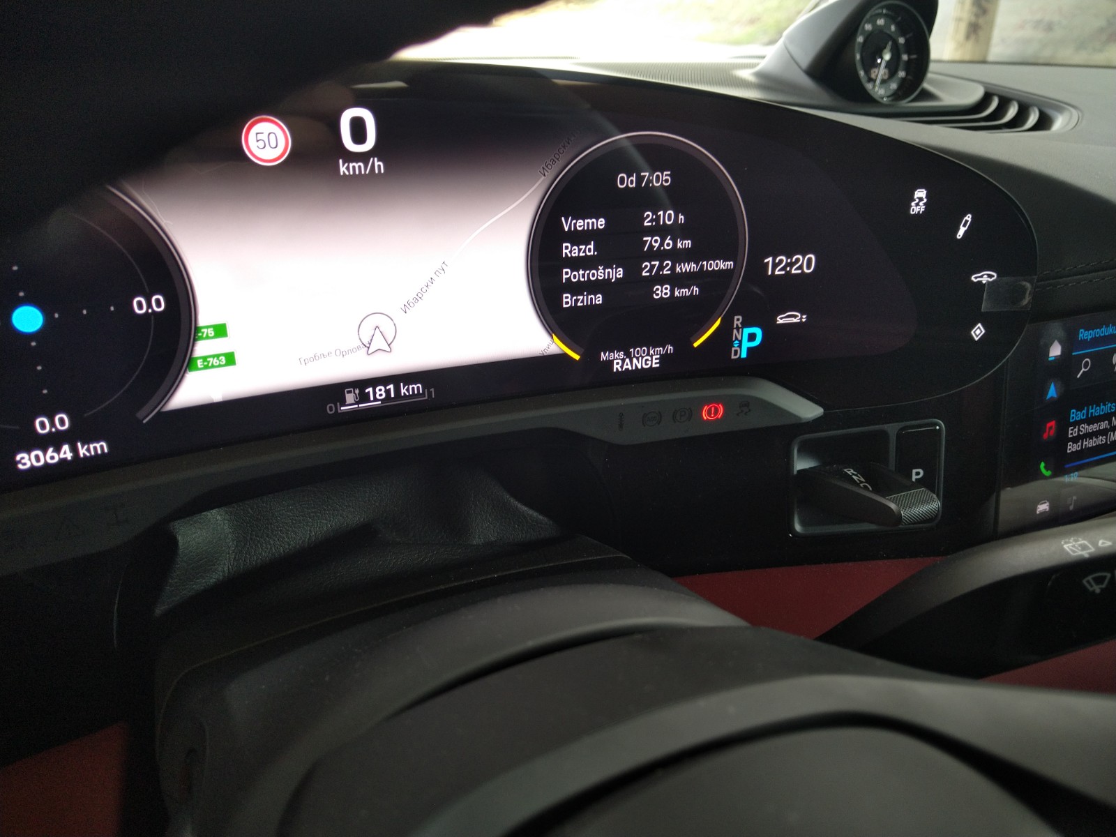 Videćemo kako će se potrošnja kretati na proleće, tokom zime je daleko od deklaracije proizvođača i iznosi 35 do 38 kW na sto kilometara, Porshe tvrdi da ide od 19 – 21 kW /100 km.