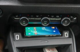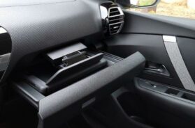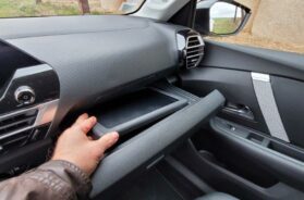 Ovoga puta Citroen je mudro odvojio komande automatskog klima uređaja i smestio ih ispod njega, iako se temperatura i dalje može podešavati preko ekrana. Malo dalje, dakle ispred suvozača, uočavam čak tri dugmića na konzoli, pritiskom na najviši izlazi nešto što me je zbunilo pri prvom susretu sa C4 pre dve godine. To čudo je zapravo nosač za ekran-tablet, smešten u polici ispod (pogledajte slike), ideja je dobra no u praksi, u šta sam se uverio i letos nakon što smo s jednim C4 proputovali bezmalo 7.000 kilometara (test u arhivi), niko se s njom ne koristi.