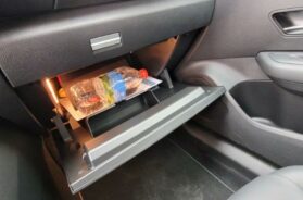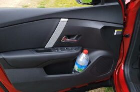 Na kraju izbacismo iz te police „kobajagi“ tablet (plastična imiticaja), da bi je koristili kao običnu i praktičnu „fioku“. Klasičan pregradak za odlaganje sitnica ipak je zadržan, s tim da je smešten preterano nisko. Praktični aspekt enterijera je za pohvalu, zgodna su udubljenja i police gde se mogu odložiti brojne svakodnevne sitnice. Reči hvale zaslužuju i upotrebljeni materijali, na centralnoj konzoli je nešto kao guminirana plastika, prijatna pod prstima i predviđena da traje.