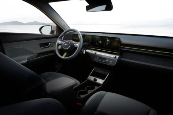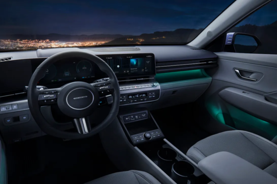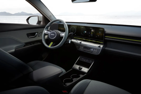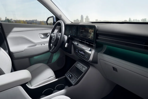 Unutrašnjost Kone ne samo da je prostranija, već će putnici na prednjim sedištima imati kontrolnu tablu u kojoj će dominirati dva velika digitalna ekrana od 12,3 inča svaki, koji zauzimaju prostor za instrument tablu i centralnu konzolu. Potpuno preuređen prostor, sa modulom za automatsku kontrolu klime i integrisanim ventilacionim mlaznicama.