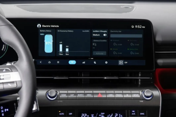 Čak je i volan sportskijeg dizajna, sa tri kraka i bez donjeg dela spljoštenog oboda. Novi Hyundai Kona posvećen je udobnosti, povezivanju i bezbednosnoj tehnologiji u vozilu, uključujući napredna bežična ažuriranja (OTA). Time će biti omogućeno ažuriranje velike većine sistema i opreme.