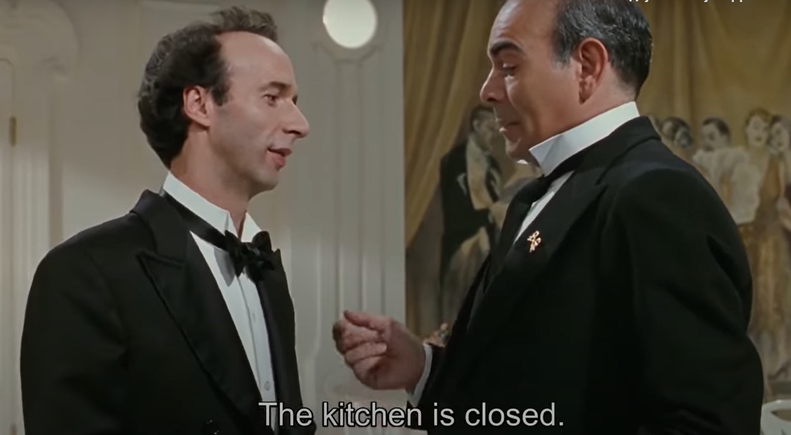 Ta scena se inače izučava kao primer savršene prodaje. Doduše gorka istina, koju ja ne razumem je da je alternativa toj porciji ribe koja je već naručena gladan stomak i krčanje creva.