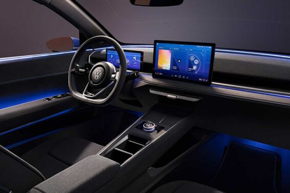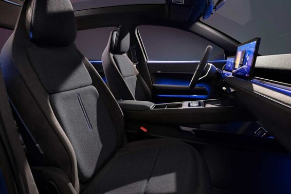 Vrata ustupaju mesto potpuno drugačijem enterijeru od onog koji predstavljaju aktuelni električni modeli kompanije. Tu je i sportski volan sa tri kraka i spljošten pri dnu. Tanak ekran instrument table i veliki ekran osetljiv na dodir na konzoli upotpunjuju unutrašnjost koja je sada još elegantnija, zahvaljujući oblogama komandne table, panelima vrata od mikro perforirane tkanine i visokom plutajućem tunelu za prenos.
