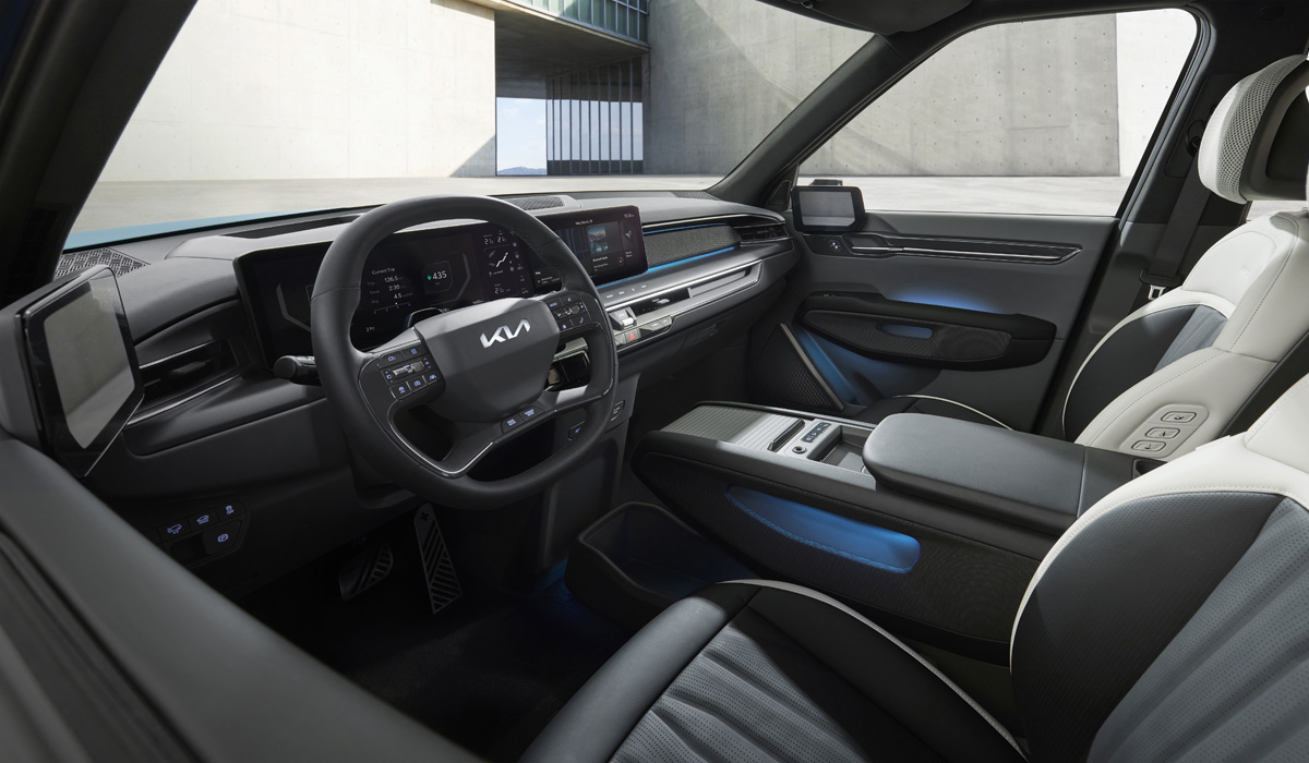 Kia EV9 poseduje tri reda za sedenje, dok je platforma za električna vozila koja podrazumeva ugradnju istih ispod kabinskog poda, omogućila razne nove mogućnosti transformacije. Na primer, jedna od tri dopuštene solucije za zasebne fotelje u drugom redu sedišta podrazumeva da se ona mogu postaviti tako da putnici gledaju jedni druge, nalik poziciji sedenja u železničkom vagonu (u kupeu). Slične postavke nisu retke ni u kombi vozilima, pa i u minibusevima.