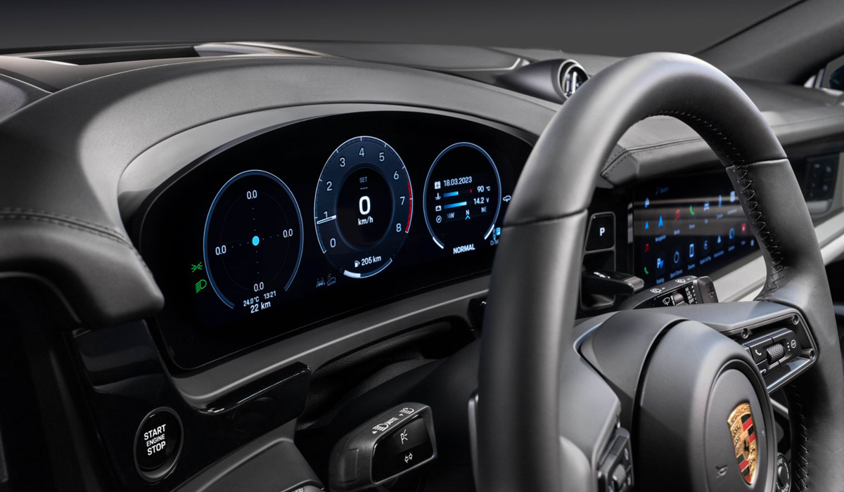 Sam obruč upravljača je isti onakav kakav poseduje i kultni Porsche 911. Na njemu se nalazi taster za izbor režima vožnje, a ima ih više: Normal, Offroad, Sport i Sport Plus). Dijagonala ekrana multimedijalnog sistema je istih 12,3 inča, ali je sam sistem sada savremenije koncepcije.