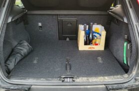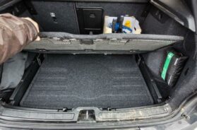 Naprotiv, veoma je praktičan, poseduje dvostruko dno i rezervni točak „ćopavac“, a i gornja polica se može postaviti u vertikalan položaj, kako bi se sprečilo tumbanje stvari. Što se tiče radnog mesta vozača, sve je u superlativima, počevši od besprekornih sedišta sa snažnim bočnim osloncima, u mom slučaju u kombinaciji koža/alkantara i sa svim mogućim električnim podešavanjima.
