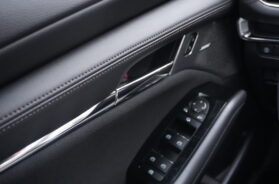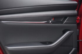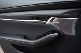 Komande za klimatizaciju su izvedene u vidu dva metalna točkića i dva reda fizičkih tastera, pri čemu je broj tastera smanjen tako da je upravljanje pojednostavljeno. Vrata pozadi izgledaju kao da su iz premijum automobila E segmenta, mekani materijali, duplim šavom prošivena veštačka koža, hrom i klavir lak. Bravo Mazda!