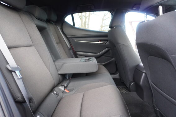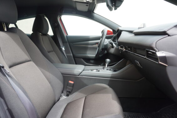 Enterijer Mazde 3 zaslužuje posebno poglavlje. Audi A3 treće generacije (2013-2020.) je po meni, do pojave Mazde 3, imao najbolje dizajniran enterijer automobila kompaktne klase ikada. Ipak, čini mi se da ja Mazda uspela da igru odvede na još viši nivo! Fotografije nisu pravedne prema enterijeru ove Mazde, u nju morate sesti, morate je dotaknuti, zaroniti laktove u izuzetno mekan i bogato obložen naslon sa ruke, sa desne i sa leve strane na vratima, morati dotaći perforiranu metalnu oblogu zvučnika BOSE, pritisnuti tastere na čijoj je amortizaciji i kliku je Mazda zaista fanatično radila tako da to i laik oseti, morate zavrteti metalne točkiće klimatizacije, pritisnuti glavni okretni točak za kontrolu info-zabavnog sistema, gurnuti ga u stranu, ili onaj manji do njega čijim kratkim dodirom možete isključiti ton, dužim dodirom isključiti ceo sistem, a pomeranjem u levo ili desno izabrati stanicu ili pesmu. Morate dotaknuti izuzetno mekanu tablu napravljenu od mekane veštačke kože sa izuzetno preciznim duplim šavovima po bokovima.