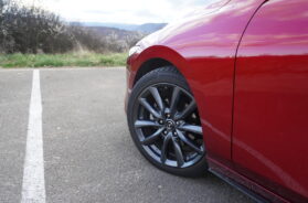 Mazda čak i na osamnaesticama izuzetno tiho i suvereno prelazi preko takozvanih „ležećih policajaca“ dok škripa ogibljenja i razni zvukovi istog su maltene nepostojeći. Ipak, mora se istaći da je Mazda podešena za sportsku vožnju i ogibljenje je čvrsto i kruto, a to se posebno oseti prelaskom preko puta obloženog kaldrmom kada Mazda poskakuje, ali se opet, zanimljivo iz sistema ogibljenja ne čuje apsolutno ništa. Odabir standardnog modela donosi točkove od 16 inča sa mesnatim gumama dimenzija 215/60 koji svojim profilom garantuju znatno veću udobnost na lošim podlogama, mada sam siguran da će ljubitelji Mazde listom odabrati R18 točkove sa gumama dimenzije 215/45 R18. Takođe, neki testeri navode da je sedan verzija mekše podešena.