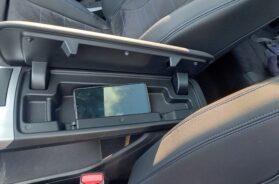 No, ta „lebdeća“ konzola možda ima i neke manje željene osobine po pitanju praktičnosti, jer u zatvorenu ostavu za sitnice (ispod oslonca za laktove) ne može da stane ni mobilni telefon od 6,1“… Ili pasoš. Može hemijska olovka, lična karta i slično… Plus, pošto se ta ostava otvara bočno (poklopac – oslonac za ruku, podiže se prema suvozaču), kada je otvorena, suvozač od tog podignutog oslonca kao „grebena zaklanjanja“, ne može da vidi šta je u toj ostavi (probah i „nema magije“).