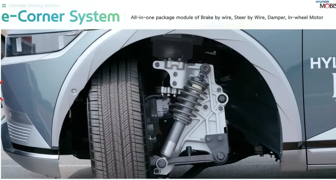 Sistem e-Corner, proizvod divizije Hyundai Mobis zadužene za delove, koristi motore u točkovima zajedno sa prilagođenim sistemima kočnica i upravljanja pomoću žice. Kompanija nije saopštila da li planira da razvija sistem za masovnu proizvodnju, iako bi to mogao biti veoma koristan sistem, posebno za ljude koji žive u gradu.