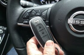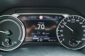 Benzinac se retko javi, tek na minut-dva da dopuni bateriju. Na komandnoj tabli, pored izduva za vazduh, pronađoh i dugme EV, njegovim aktiviranjem Juke prelazi u 100 % električni program funkcionisanja, pogodili ste opet pod uslovom da u bateriji ima dovoljno energije. No, s prvim pređenim kilometrima sila kočenja po podizanju stopala s gasa delovala mi je nedovoljnom, sve dok ne ugledah još jedno dugme s oznakom E-Pedal, smešteno nimalo praktično između sedišta (preterano unazad van vidokruga vozača).