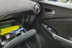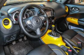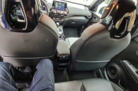 Tako dođosmo i do nje, no ni ovde ne pronađoh nekadašnju orginalnost, inspirisanu svetom dvotočkaša. Prisetite se ili pogledajte fotografiju enterijera Jukea 1 (galerija iznad), koji poseduje središnju konzolu u stilu rezervoara za motocikl. U novom treba mnogo više mašte da bi se prepoznao, posebno jer konzola nije lakirana kao pre, već je presvučena mekanom plastikom, bogami i alkantarom, koju pronalazimo i na centralnoj konzoli i vratima.