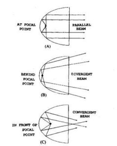Kao što se vidi na slici, i ovde se svetlo odbija od senila. Međutim u fokalnoj tački se nalazi zastor koji blokira one zrake svetla koji bi otišli uslovno rečeno “na gore” i tako smetali drugima. Nakon toga svetlo prolazi kroz projektor gde se efekat pojačava i svetlosni snop dobija onaj zasečeni deo, to jest “cut off” koji je već postao znak kontrolisanog i kvalitetnog svetla.