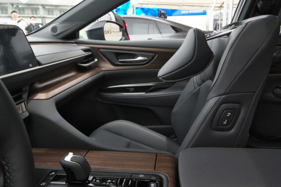 U putničkoj kabini su prisutna dva ekrana na čeonom panelu, dok je primetno i odsustvo analognih tastera. Crown pruža dvozonsku klimatizaciju, grejana i hlađena prednja sedišta.