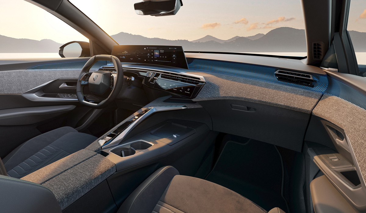 „Trihiljade osmica“ će se pojaviti kao prvenac, onaj model koji će premijerno promovisati novu čeonu arhitekturu nazvanu Panoramic i-Cockpit. U pitanju je proizvod dalje evolucije koncepta i-Cockpit, koji je lansiran pre nekih jedanaest godina. Ključna razlika u odnosu na ono što imamo kod postojećih Peugeota, tiče se implementacije zakrivljenog ekrana dijagonale 21 inča, a on je nakačen na većoj nadmorskoj visini od obruča upravljača i integriše instrumentacioni klaster s onim koji pokriva funkcije multimedijalnog sistema. Kako bilo, uvođenjem ove arhitekutre, gasi se ideja upotrebe projekcionog ekrana (head-up).