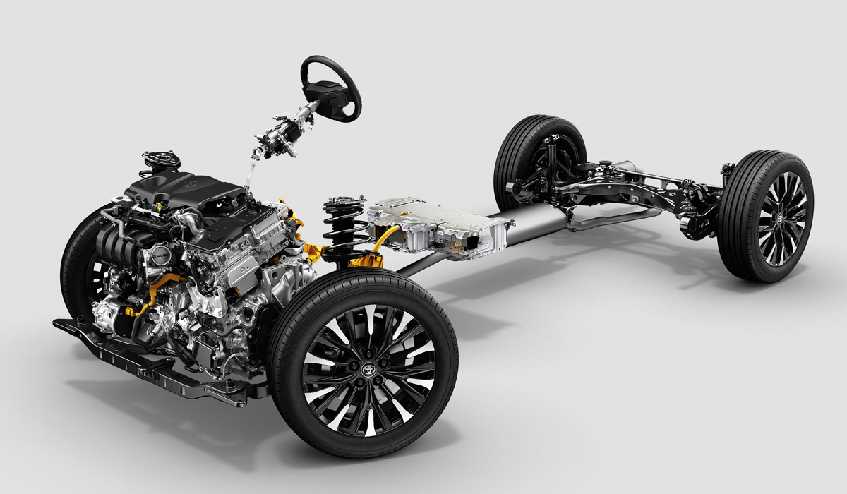 Samo je hibridni sklop sa vršnom snagom od 250 KS ostao zajednički za dva modela. Sastoji se od atmosferskog 2.5 (190 KS, 236 Nm) i elektromehaničkog varijatora sa vučnim motorom (182 KS, 270 Nm). Osnovni pogon na prednje točkove, uz doplatu – pogon na sva četiri točka E-Four sa zasebnim elektromotorom na zadnjoj osovini (54 KS, 121 Nm). Ali u isto vreme, vršna sistemska snaga hibrida sa pogonom na sve točkove ostaje na istom nivou (250 KS). Kapacitet baterije je tradicionalno mali (5 Ah), ali kasnije Toyota obećava da će u asortiman dodati dopunjive hibride sa velikom baterijom.