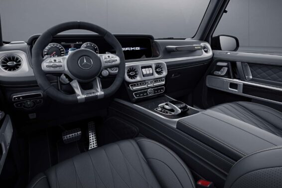 Unutra, G63 Grand Edition ima kontrastnu crno-zlatnu kabinu. SUV ima ambleme AMG-a na crnoj oblogi pragova, sedišta „umotana“ u Manufaktur crnu napa kožu sa zlatnim kontrastnim šavovima i kožne ručke za hvatanje krova. Mercedes izrađuje ostale ukrasne komade u ugljeniku sa bakarnim navojem.