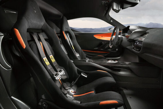 Putnička kabina je dodatno oplemenjena novim količinama materijala od plastike ojačane ugljeničnim vlaknima. Ugrađena su sedišta od kompozitnog materijala i pojednostavljeni su paneli trima. Upravo je radom na ovim „sitnicama“ obezbeđeno sniženje mase vozila za nekih desetak kilograma. Kupe s oznakom SF90 XX Stradale krasi neto masa (bez tečnosti) od svega 1.560 kilograma, dok je spajder malo gojazniji – 1.660 kg.