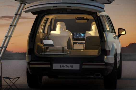 Navodi se da je promenom generacija Santa Fe dobio prostraniju unutrašnjost, ali je prtljažnik još primetnije uvećan. Drugi i treći red sedišta se preklapaju i formiraju ravan pod. Otvor petih vrata je napravljen što je moguće šire, tako da su glavna zadnja svetla smeštena u potpunosti na njemu. Oni su duplirani dodatnim odeljcima u braniku. Maksimalni prečnik točkova je 21 inča.