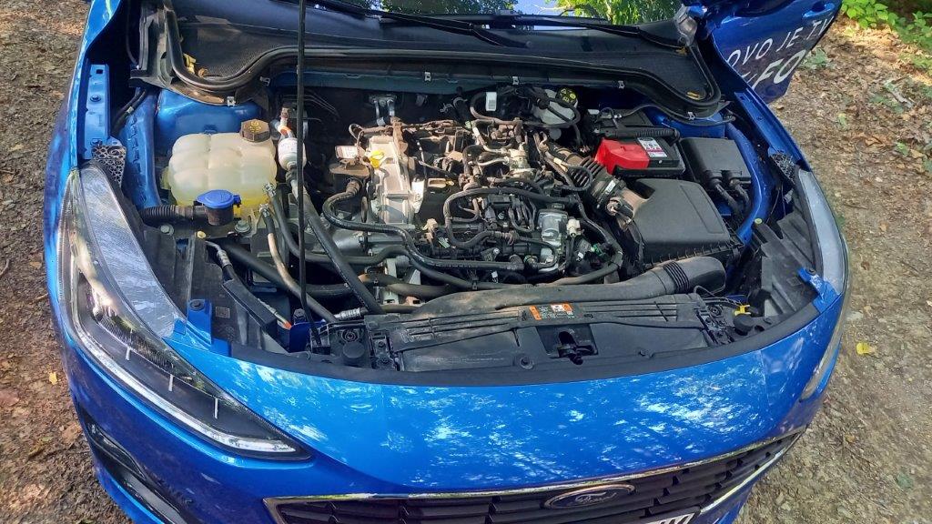 Testiranog Focusa pokreće čuveni trocilindrični turbo benzinski 1,0 Ecoboost, u varijanti izvedbe maksimalne snage od 125 ks pri 6.000 obrtaja i maksimalnog obrtnog momenta od 170 Nm, dostupnog pri 1.400 do 4.500 obrtaja.
