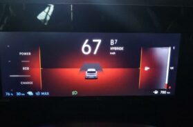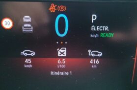 Po preuzimanju vozila u sada zajedničkom pres centru za sve brendove grupacije (fabrika u mestu Poizi 40 km od Pariza) prvo što me je interesovalo je električna autonomija, ukoliko je verovati putnom računaru iznosi samo 38 km. Razočaravajuće, no radi se samo o proceni zasnovanoj na prosečnoj potrošnji bivših vozača, koja je iznosila bezmalo 17 kW.