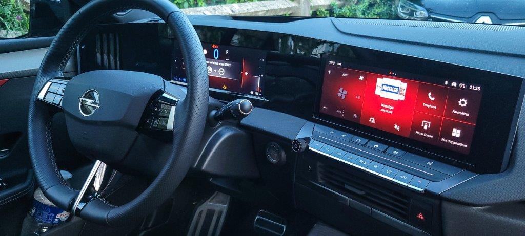 Mišljenja će verovatno biti podeljena u vezi instrument table, nazvane „Pure Panel“, kao i kod Mokke i ovde se radi o dva velika ekrana od 10 inča, no kod Astre su spojena u jednu celinu i blago zaokrenuta ka vozaču. Desni je kao po običaju info-zabavni, dok drugi, ispred vozača, zamenjuje klasične instrumente.