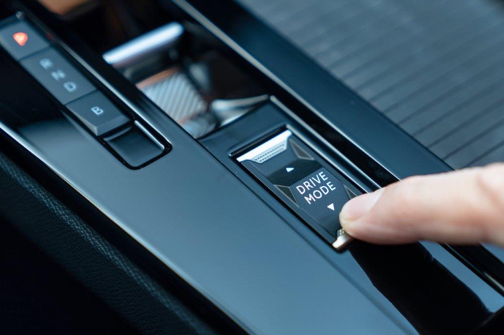 Kao i kod ostalih novijih modela grupacije ručica menjača zamenjena je sklopkom skromnih dimenzija, usled čega na centralnoj konzoli staje dovoljno mesta za odlaganje sitnica. Primećujem da su pored sklopke menjača i druge komande preuzete iz aktuelnih modela kuće, za ručnu električnu kočnicu i taster za izbor programa rada motora, čak je i oslonac za lakat isti.