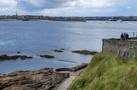 Upravo zbog velike plime, ali i raznih istorijskih događaja, stari grad okružen je ogromnim zidovima, more zna da se popne na samo nekoliko metara od gornjeg dela. Par sati kasnije povuče se do horizonta, što omogućuje nezaboravne šetnje po pesku i pentranje po stenama koje izrodi. Svojevremno smo se s klincima zabavljali hvatajući račiće, ribice i školjke zarobljene u lokvama, sada nam ostaju samo nostaligične šetnje u dvoje, odnosno posete restoranima s lokalnim specijalitetima.