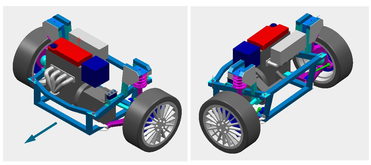Ovde je CAD slika mog predloga kako ugraditi jaci motor u Smart Rodster, 2007 godina. Motor rodstera je vec ugradjen serijski u poseban ram, koristio sam njegova mesta za pricvrscivanje. Na slici je prikazan motor Brabus iz modela Forfour – 1,4 litra, 160 KS. Mogao bi da se ugradi motor do 2,o litra.