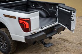 Pozadi, najveća su vest pristupna vrata sanduka Pro Access. Ovo je Fordov dugo očekivani odgovor na trik prtljažnika od Rama, Chevroleta i GMC-a, koji uključuje jednostavna vrata koja se otvaraju usred tradicionalne „kapije“ koja se spušta. Otvara se u tri koraka: 37 stepeni, 70 stepeni i 100 stepeni, omogućavajući lak pristup stvarima u sanduku. Prvi korak je dovoljno plitak da se otvori sa pričvršćenom prikolicom, a Ford ugrađuje novu kutiju za odlaganje u sanduk iza suvozačkog točka. Ko se ne odluči za sistem Power Boost, druga kutija za skladištenje se nalazi na strani vozača.