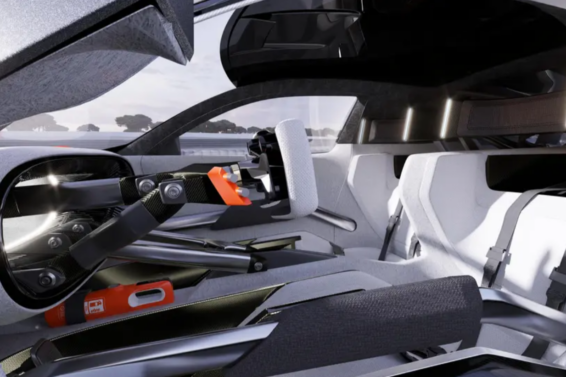 Međutim, postoji unutrašnjost kojoj se pristupa kroz makazasta vrata i ima bela sedišta, kvadratni volan i ništa drugo. Ovde očigledno dolazi do uticaja Formule E, sa golim kokpitom koji prikazuje samo osnovne informacije sa „minimalnim ometanjima“. Sam volan je postavljen na stub upravljača od ugljeničnih vlakana koji izgleda veoma motoristički.