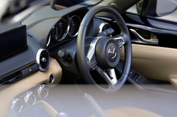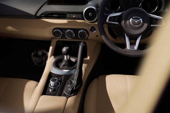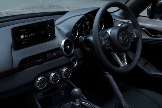 Drevni informativno-zabavni sistem je konačno napravio mesto za novu 8,8-inčnu postavku koja je nedavno predstavljena. On modernizuje kontrolnu tablu zahvaljujući tanjim okvirima, ali prava prednost bi trebalo da bude njegova funkcionalnost pošto je stari sistem bio zaostao i imao je zastareli korisnički interfejs. Tu je i nova tamnocrvena unutrašnjost sa bež gornjim delom za kombinaciju koju Mazda kaže da podseća na roudstere stare škole.