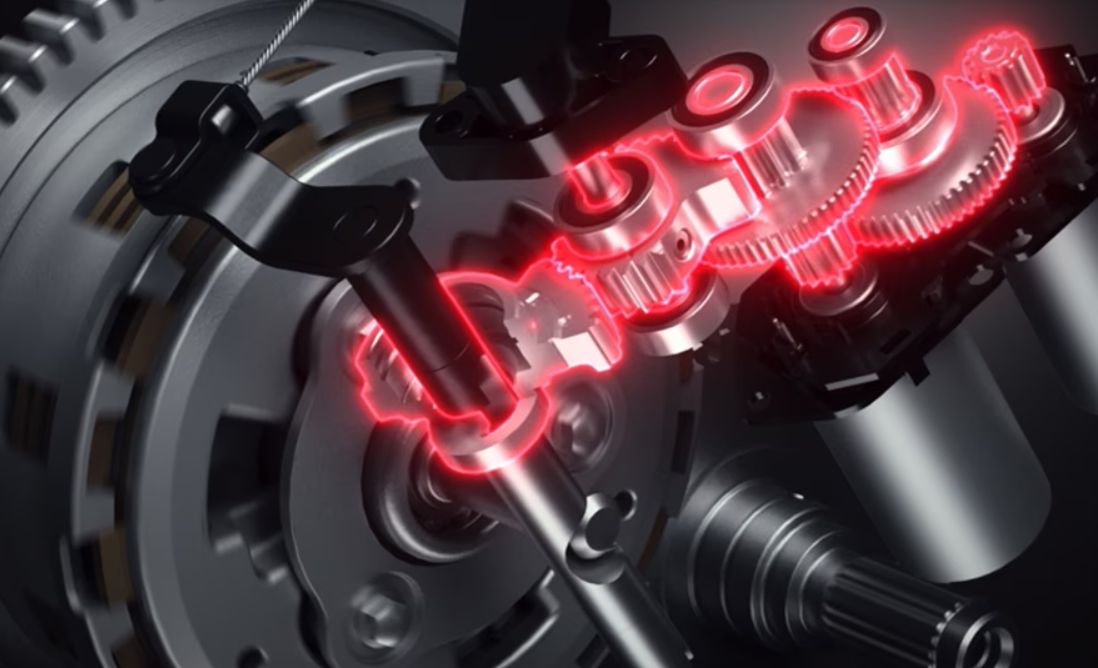 Iako prikazana Honda i dalje ima ručicu spojnice, ona se ne koristi pri startovanju. U kokpitu je prikazan novi simbol sa zelenim „A“, što verovatno znači automatski. Noga jednostavno škljocne u brzinu i uz blago proklizavanje na spojnici Honda „poleće“. Nije jasno da li se spojnica uvek automatski aktivira prilikom prebacivanja u viši ili niži stepen prenosa ili da li brzi menjač prekida vezu za napajanje pogonskom silom.