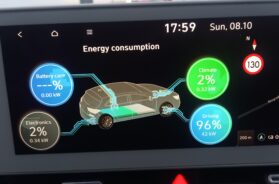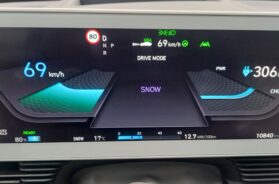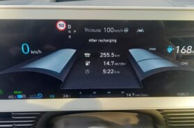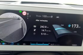 Inače, tokom vožnje, ako to želite, na centralnom displeju u svakom trenutku možete da lako očitate koja je trenutna angažovana snaga (i potrošnja) pogonskog sistema ili alternativno tome, kolika se snaga trenutno ostvaruje u fazi regeneracije (pa ćete tu nekada da “pročitate” 15, 20 … 50 kW ili i više “u plusu”, ali kada usporavate i možda toliko ili manje sa predznakom “minus”). Ili, možete da znate i distribuciju ukupne energije koja se troši, tj. da znate koliko procenata od toga trenutno “ide” na pogon vozila, koliko na rad klima uredjaja, koliko na rad elektronike vozila, a koliko za “kondicioniranje baterije” (njeno grejenje, hladjenje …).