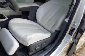 Ta prednja sedišta meni više liče na fotelje za odmor, a imaju i posebno podesivi oslonac za potkolenice (pogledajte fotografije) i kada se nasloni ledja “obore” (i na drugi način sedišta podese), u tim sedištima suvozač zaista lepo može da se odmara i provodi tokom same vožnje (ako niko ne sedi pozadi desno), a i vozač može lepo “da prilegne” dok je vozilo negde parkirano (ako niko ne sedi pozadi iza vozača). Možda i dok se puni baterija, jer, zavisno od okolnosti, to može i da dosta potraje.