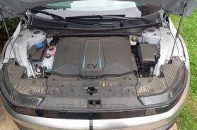 Ispod prednje haube postoji takodje jedna ostava, čija zapremina zavisi od toga da li vozilo ima pogon samo na zadnje ili na sve točkove. Pa može da bude 57 litara (za verziju sa zadnjim pogonom) ili 24 litara (za AWD verziju). U teoriji, tu mogu da se drže (i) kablovi za punjenje baterije, ali, deluje mi malo zamornom ideja o tome da pre početka punjenja baterije na AC punjaču ili po okončanju punjenja otvarati prednju haubu da bi se uzeli ili vratili kablovi.