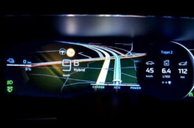 Mislim pre svega na instrument tablu (ekran visoke rezolucije od 12,3 inča) sa poznatom grafikom i mogućnošću promene boja. Svega tu ima, „ubilo“ se za igranje, iako se na kraju uglavnom sve svede na izbor ekrana sa brzinomerom (imitacija klasičnih instrumenata), odnosno kod hibrida sa specifičnim pokazivačima za punjenje/pražnjenje baterije, kao i za transfer snage i akumulirane energije, zbog kojih je izbačen obrtomer.