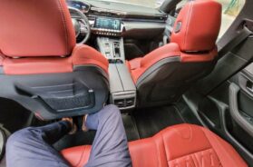 Rešenje koje sigurno ne odgovara svima, što u dobroj meri zavisi od korpulencije vozača. Sama sedišta su k’o salivena, udobna, sa snažnim bočnim osloncima i produžetkom za sedalni deo. Kod voženog hibrida behu od crvene kože, što samo pojačava „vauuu“ efekat.