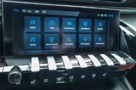 Do izražaja odmah dolazi i centralni ekran, od sada za sve verzije prečnika 10 inča (ranije samo 8 inča sa osnovnu verziju). Kao i kokpit blago je zakošen ka vozaču, uz poboljšan info zabavni sistem, nazvan i-Connect Advanced (tehnologija ista kao kod novijih modela 308, 408 i DS7), dok su ispod njega prelepi klavir prekidači od aluminijuma, koji štrče poput kandži.