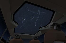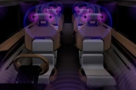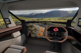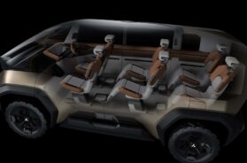 Kabina je modularna u smislu da ima ono što Mitsubishi naziva panoramskim sedištima. Umotana su u žutu kožu i ova sedišta ne samo da klize napred i nazad, već se i prednja rotiraju u polukrugu. U svakom naslonu za glavu je postavljen par Yamahinih zvučnika, dok je školjka ojačana zadnjim stubovima napravljenim od osnaženog rebrastog okvira s kružnom strukturom.