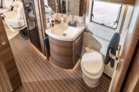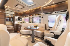 Dnevni boravak i kabina su dostupni u različitim bojama, završnim nivoima i materijalima, sa dve klupe okrenute jedna prema drugoj i trpezarijskim stolom u sredini. Dve prednje „kapetanske“ fotelje se takođe okreću za više prostora za sedenje. Napred, kamp kućica ima kožnu kontrolnu tablu i povišen položaj sedenja.