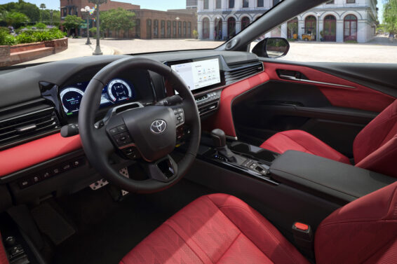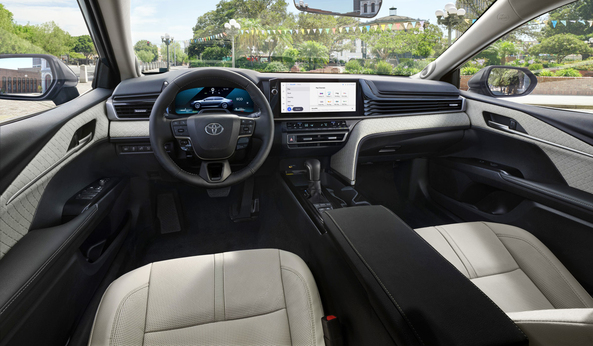 Materijali za završnu obradu i ukupan nivo udobnosti su poboljšani. U skupljim paketima opreme su se pojavile perforirane kožne presvlake . Za „sportsku“ verziju s nazivom paketa opreme XSE-a, ovo je privlačna crvena verzija crvenog kokpita (Cockpit Red), a „luksuzni“ XLE, po prvi put za Camry, nudi kombinaciju kože i ukrasa sedišta od mikrovlakana Dinamica. Pored toka dekorativni umeci za vrata i prednji panel su napravljeni od istog materijala.