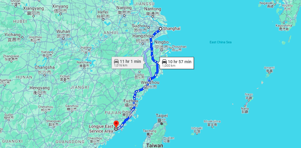 Četrnaestočasovno putovanje se prenosilo uživo onlajn, počevši u nedelju ujutro u 6:32 na stanici za zamenu baterija (battery swap station – PSS) u Šangaju. Lijev suvozač bila je Šen Fei, direktor kompanije Nio Power. Tokom putovanja, Vilijam je otkrio da je baterija od 150 kWh već testirana na ruti između Kunminga i Beihaija, postavljajući rekord za masovno proizvedena električna vozila koja prelaze 1.145 kilometara.