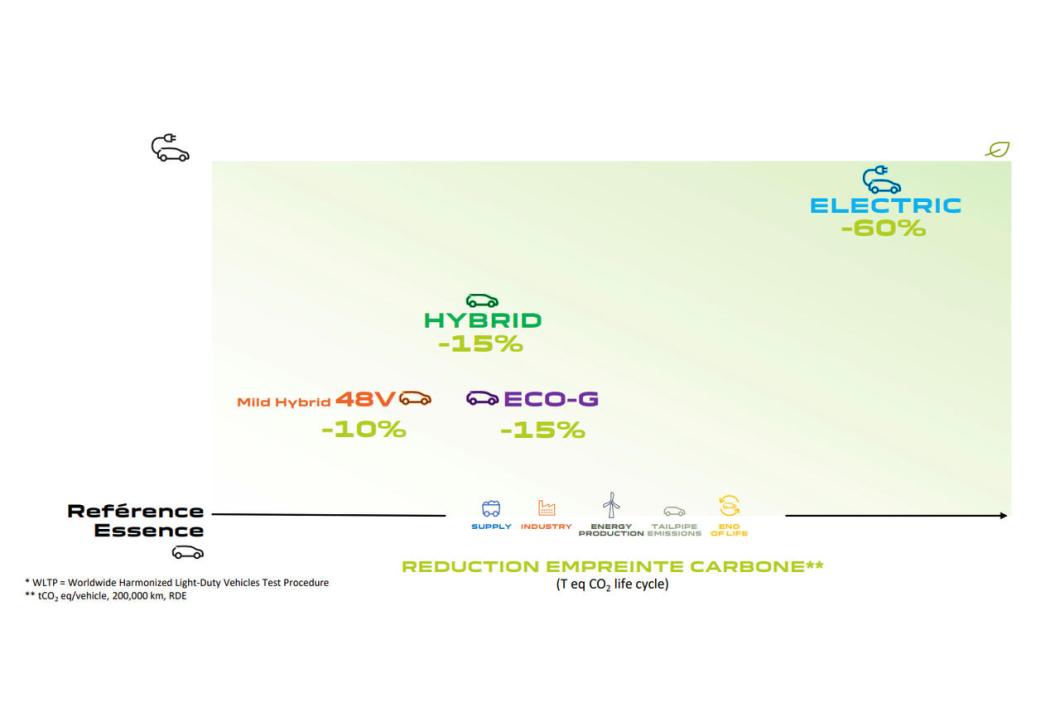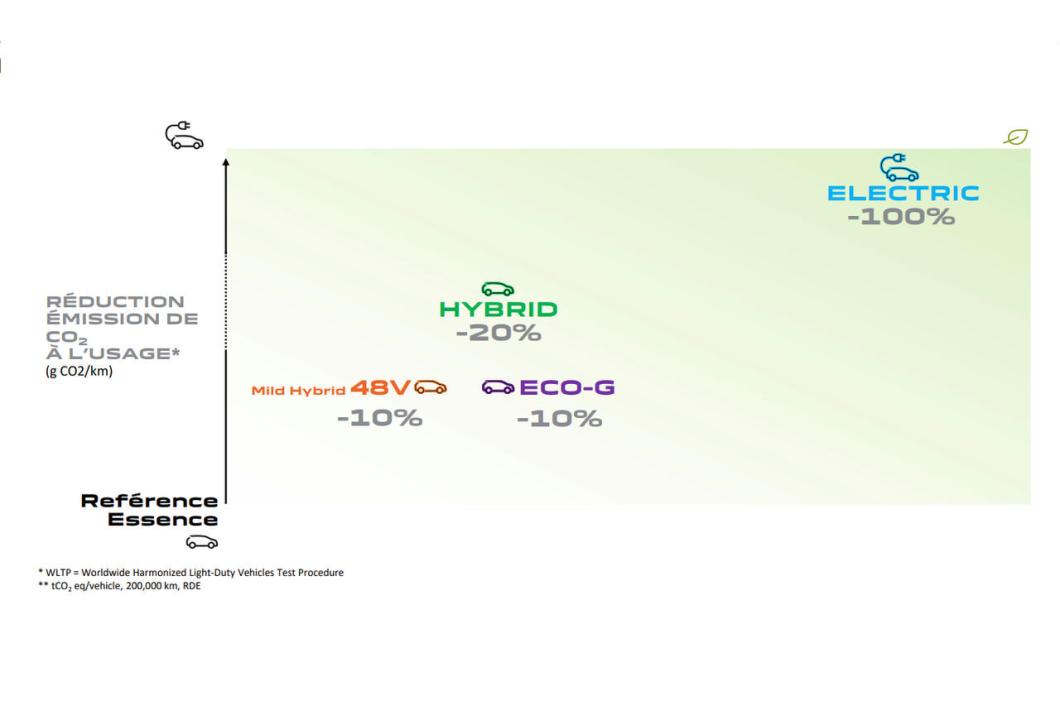 Ako se uzmu u obzir emisije CO2 tokom celog životnog ciklusa, od proizvodnje do konačne reciklaže, gas čak ima prednost u odnosu na prvu fazu elektrifikacije. Izbegavanje proizvodnje dodatne baterije smanjilo bi ugljenični otisak za 15%, umesto 10% za blagi hibrid. Istovremeno je ekonomičnija za upotrebu. U ovoj oblasti, TNG bi čak bio u rangu sa „punim hibridom“, koji je mnogo skuplji za kupovinu. Jogger Eco-100 tako štedi 5.000 evra u poređenju sa verzijom Hybrid 140, sa identičnim završnim nivoom.