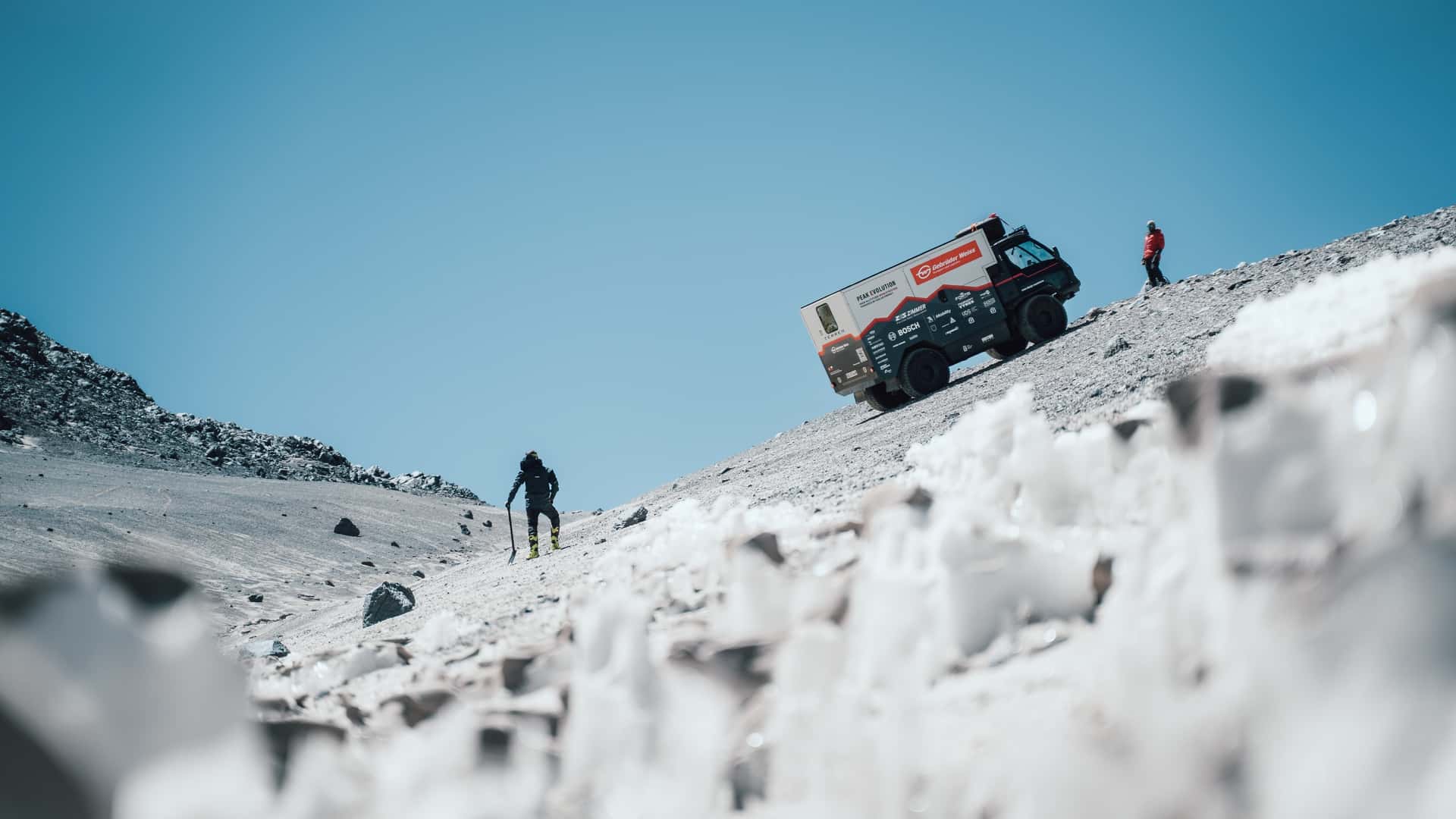 U Čileu, Ohos del Salado (Ojos del Salado – slane oči) je popularno mesto za avanturiste svih vrsta. Porsche 911 je tamo nedavno postavio visinski rekord na 6.734 metra. Kultni sportak nije jedini koji je krenuo na snežne puteve najvišeg aktivnog vulkana na planeti. Kao što napisasmo u uvodu, električni kamion Terren je upravo oborio visinski rekord za električno vozilo popevši se na 6.500 metara. Ovaj solarni kamion je upregao Peak Evolution, švajcarsko udruženje koje podržava Gebrüder Weiss.